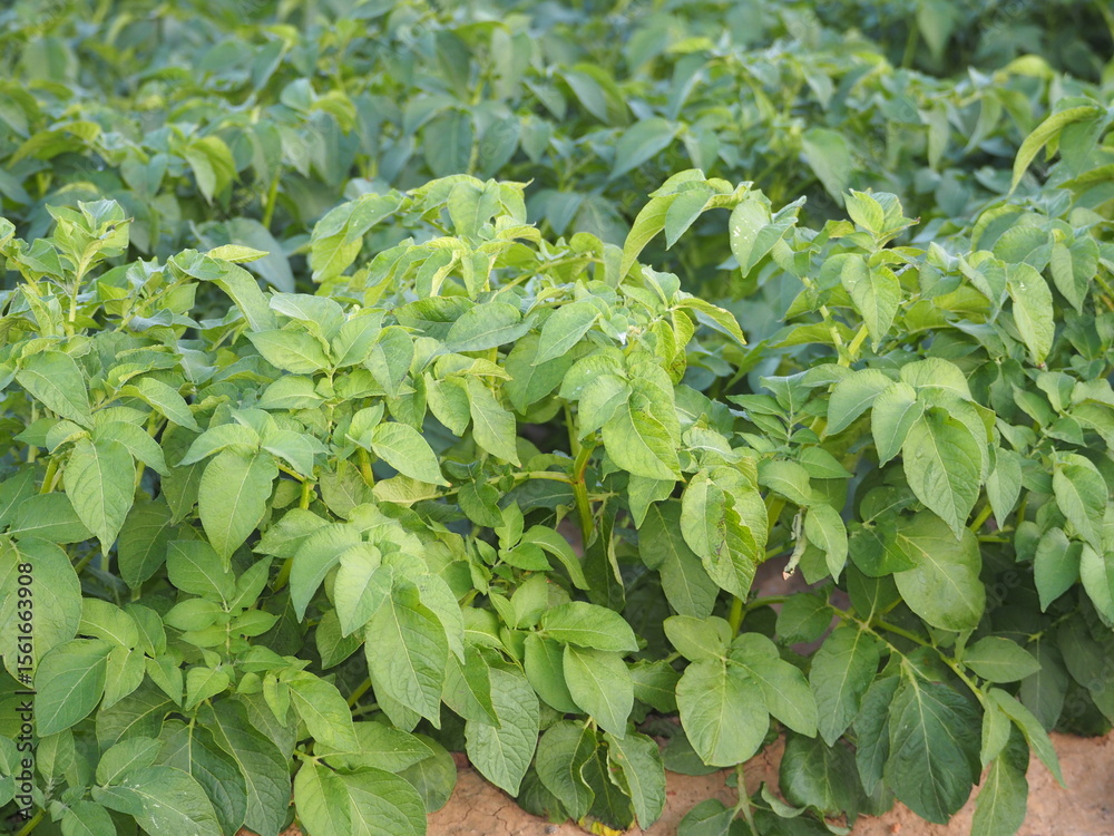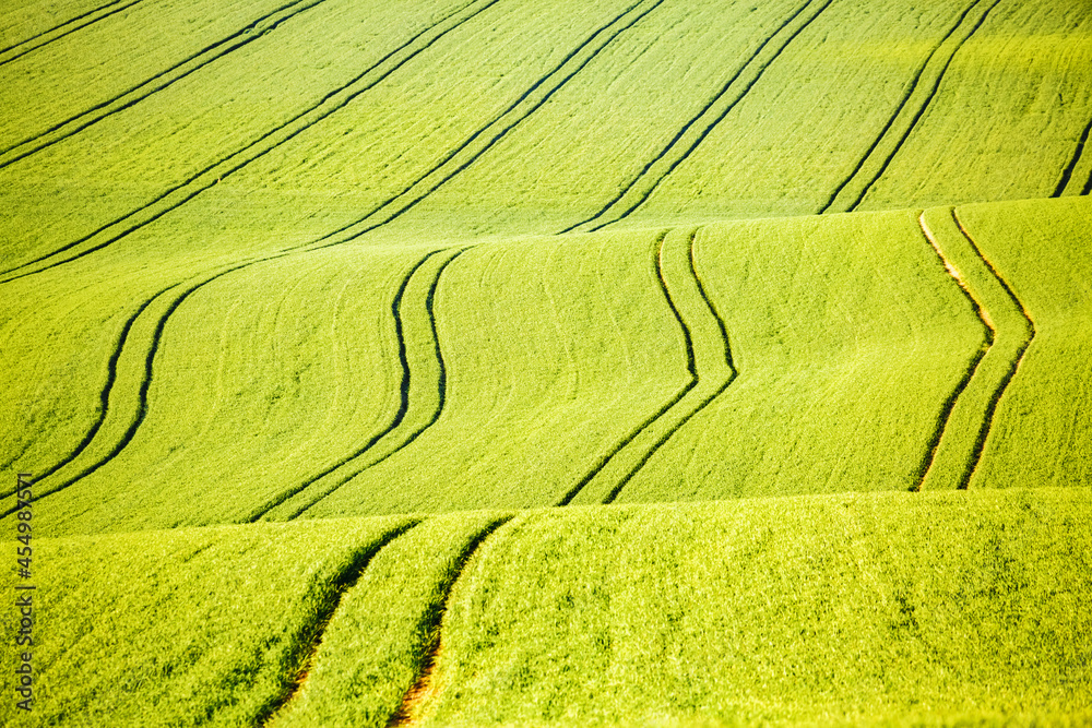 Picturesque wavy fields in agricultural area on a sunny day.