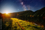 Gorgeous night landscape with a bright Milky Way over the river.