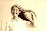 Happy middle aged Asian lady shows natural silver hair posing on light background in studio. Mature beauty lifestyle