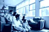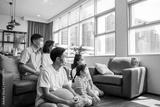 Social distancing,cheerful safty,insurance family,stay at home and new normal lifestyle concept.Strong healthy asian family wearing surgical protective face mask stay quarantined together at home.
