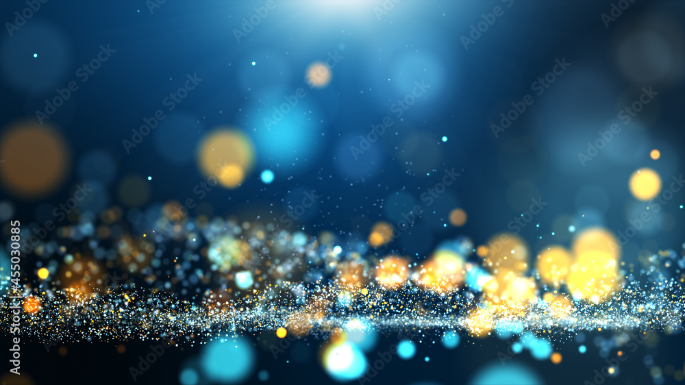Abstract dark blue yellow digital particle wave and light background ,animation cyber or technology background..