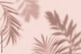 Shadow of tropical palm leaves on pastel pink background. Minimal nature summer concept.