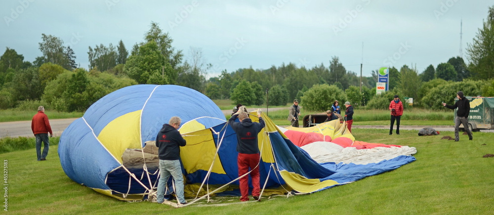 Preparing to take off with a colorful hot air balloon.