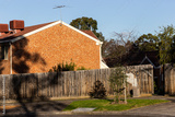 Brick house in peaceful suburb street.
