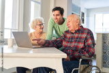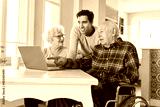 Sohn hilft Senioren Eltern am Computer beim Video Streaming