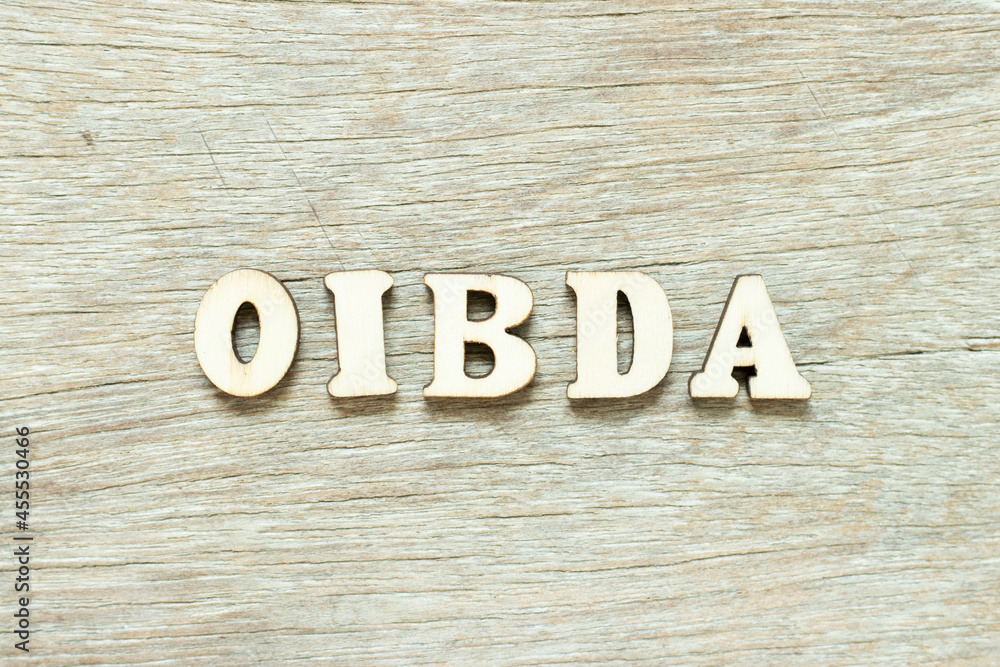 Alphabet letter in word OIBDA (Abbreviation of .Operating Income Before Depreciation and Amortization) on wood background