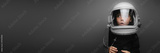 Small child wants to fly an airplane wearing an airplane helmet