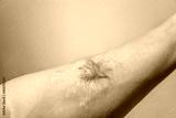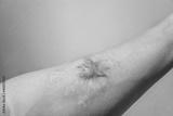 Close up Keloid scar (Hypertrophic Scar) on man arm skin after accident