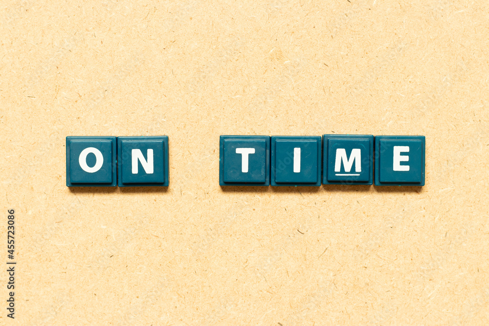 Tile alphabet letter in word on time on wood background