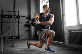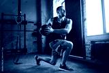 sport, bodybuilding, fitness and people concept - young man exercising with medicine ball in gym