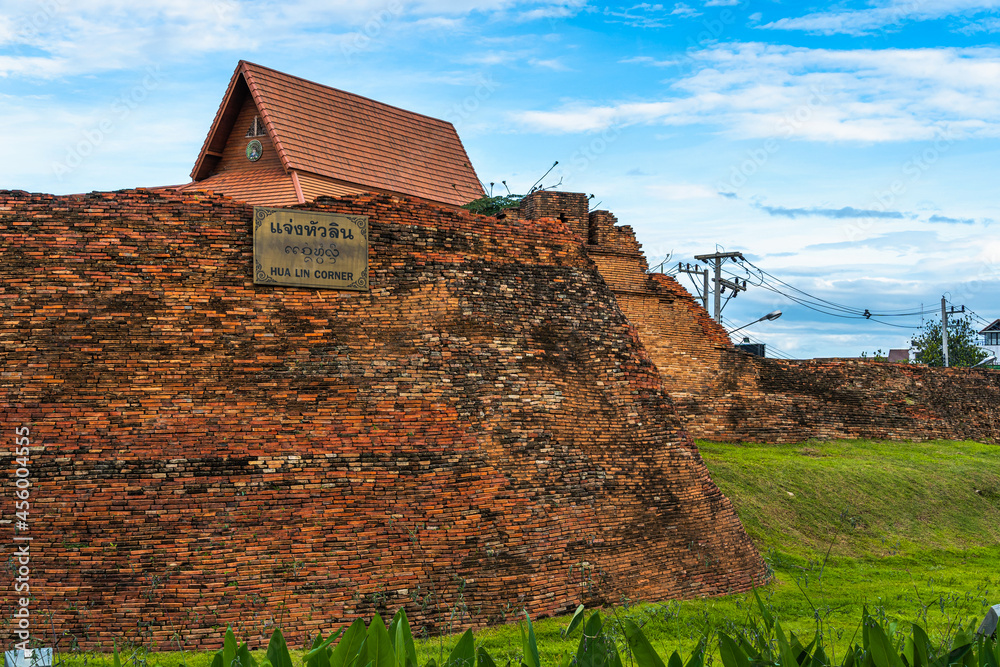 City Moat and Street at Chiang Mai old town city and street ancient wall at moat (Hua Lin Corner) is a major tourist attraction in Chiang Mai Northern Thailand.