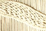 Close-up of hand made macrame texture pattern. ECO friendly modern knitting DIY natural decoration concept in the interior. Handmade macrame 100% cotton. Female hobby.