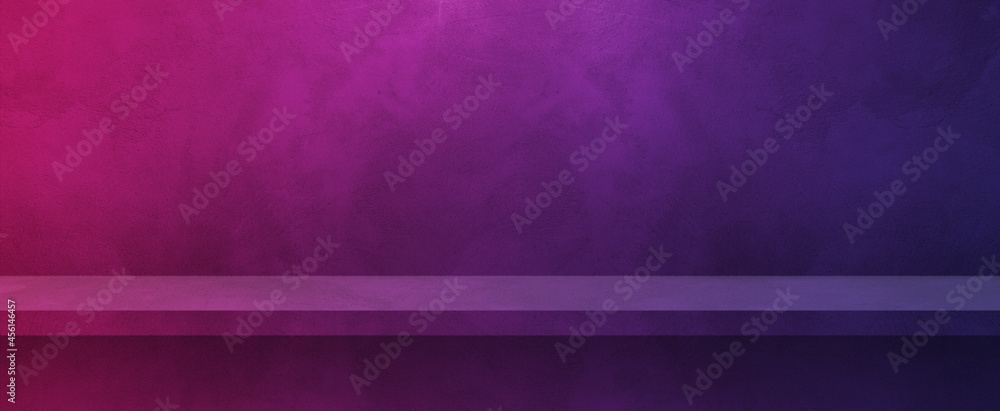 Empty shelf on a purple wall. Background template. Horizontal banner