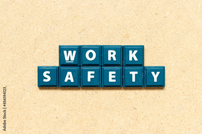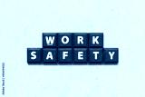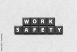 Tile alphabet letter in word work safety on wood background