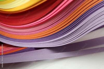 Abstract bright color wave curl rainbow strip paper horizontal background.