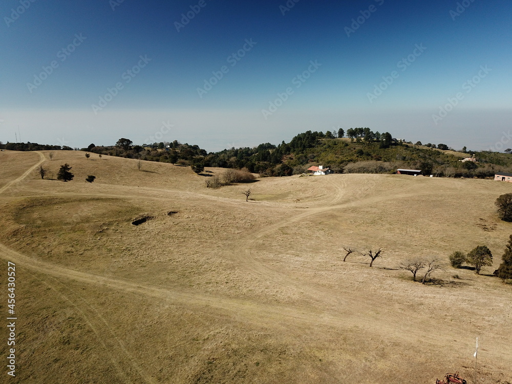 Villa Nougues area in the hills of Tucumán, town, meadow, wooded hills in autumn