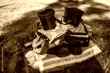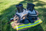 Firefighter boots and clothing in a neat stack as part of a 9/11 Sept 11 remembrance service in Auburn, California.