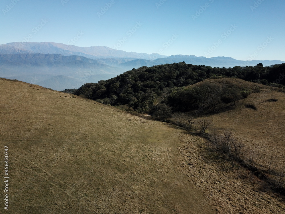 Villa Nougues area in the hills of Tucumán, town, meadow, wooded hills in autumn
