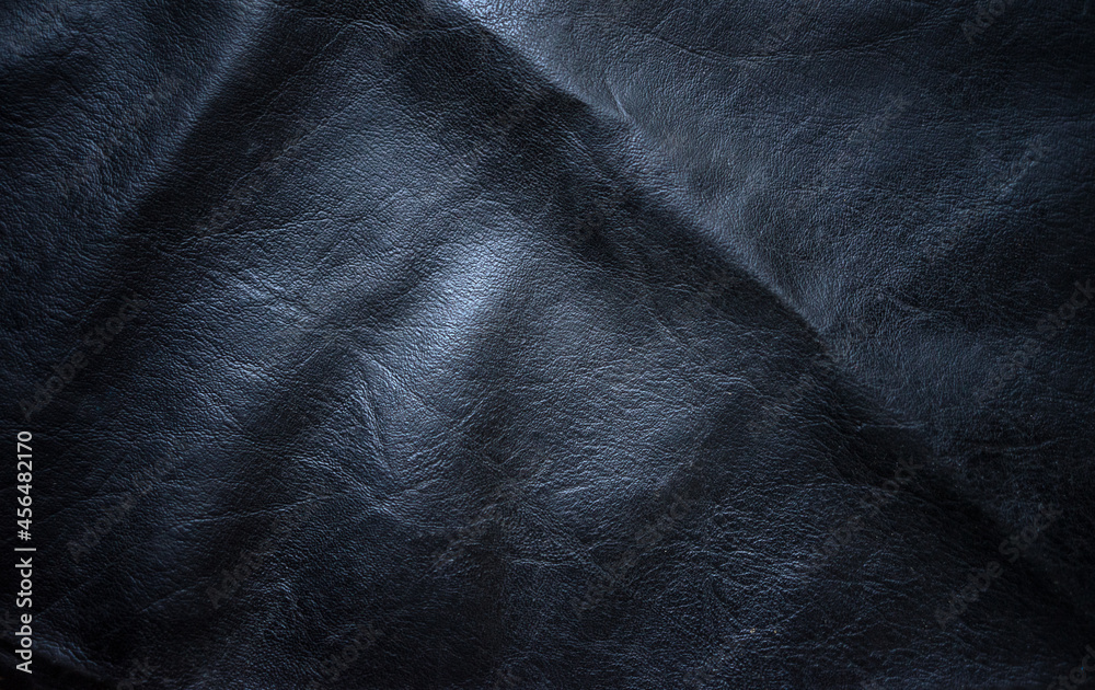 Photo of the texture of genuine black leather.Upholstery of furniture and car interior with leather.