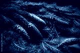Green spruce branches with needles and brown cones. New Year's background for congratulations.
