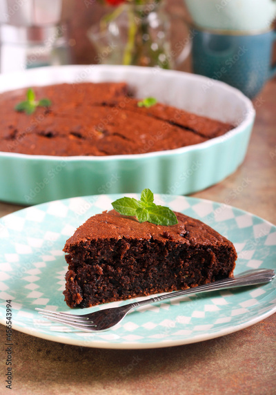 Chocolate zucchini cake, served
