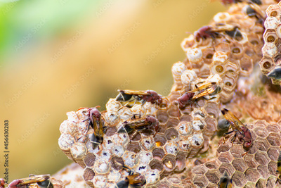 wasp and wasp nest in nature