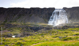 Dynjandi, Iceland on august 6, 2021: Dynjandi is the most famous waterfall of the West Fjords, Iceland