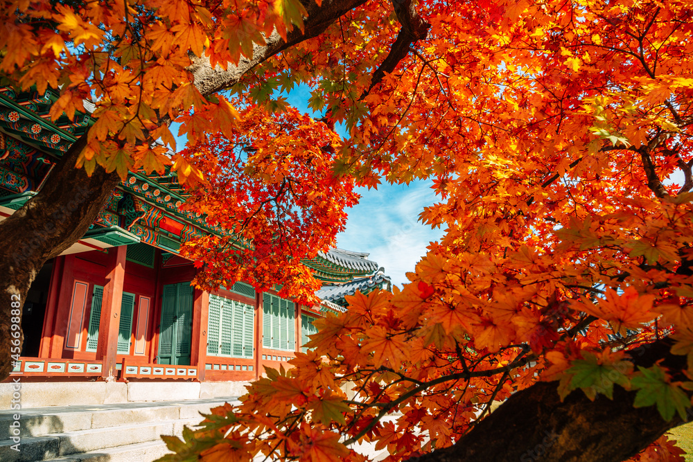 Deoksugung Palace with autumn maple in Seoul, Korea