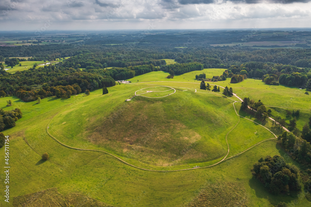 Historical mound Satrija in Samogitia, Lithuania, aerial view