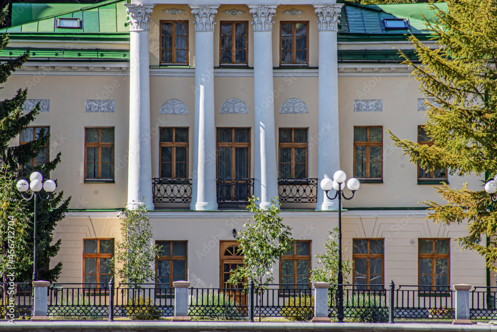 A fragment of the facade of a historical building on an autumn summer day
