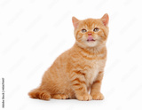 small red british kitten on white background