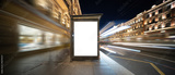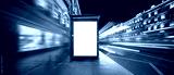Vertical billboard. In the night city at the bus stop.