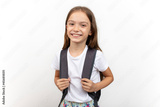 Back To School. Child girl with backpack on white isolated background. education. concept, banner, poster.