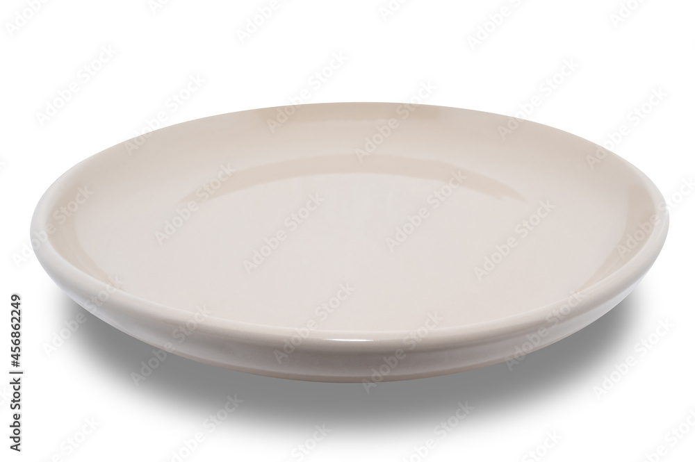Brown circle ceramics plate isolated on white background.