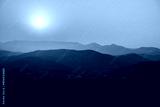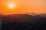 Silhouettes of mountains at dawn or sunset. Beautiful natural orange landscape