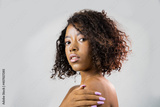 Beauty portrait of African American woman with clean healthy skin with afro hair . Beautiful black woman. Cosmetics, makeup and fashion