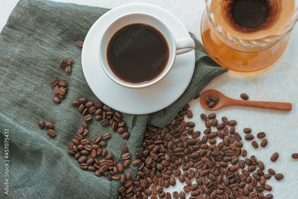 cup of coffee with beans