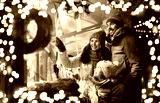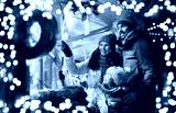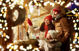 family, winter holidays and celebration concept - happy mother, father and little daughter at christmas market on town hall square in tallinn, estonia