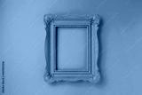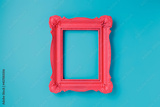 A pink empty frame isolated on the vibrant blue background. Decorative detail, retro inspired backdrop. Creative pop art antique frame concept. Juxtapose of and vintage and contemporary style.