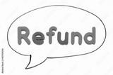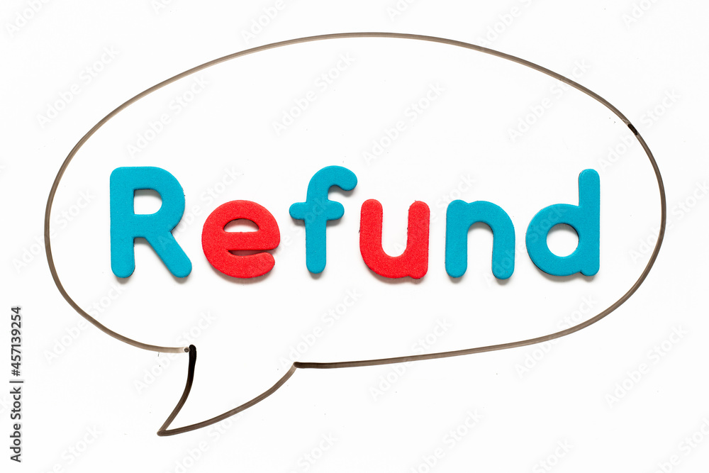Alphabet letter with word refund in black line hand drawing as bubble speech on white board background
