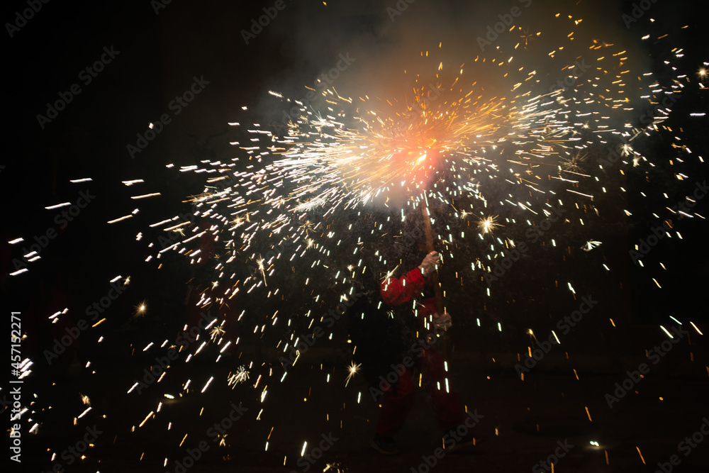 Demons fireworks celebration. Concept: devils party in Mallorca at night