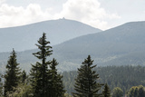 View to Sniezka, highest mountain of the Silesian Ridge in the Giant Mountains from Karpacz, Poland