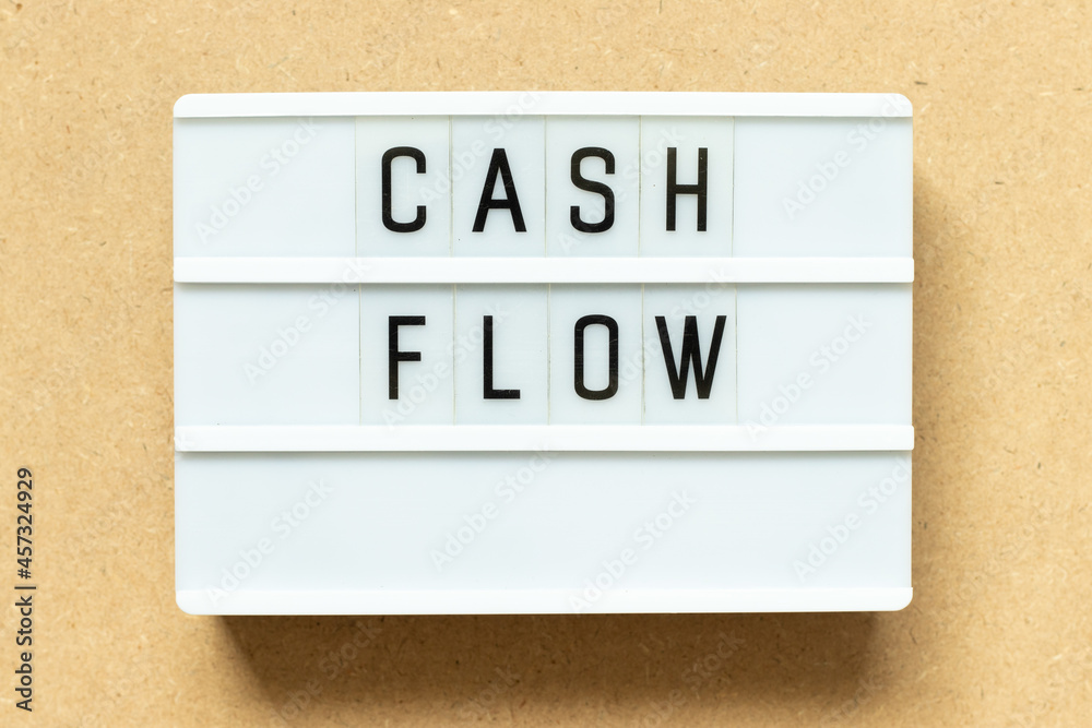 Lightbox with word cash flow on wood background