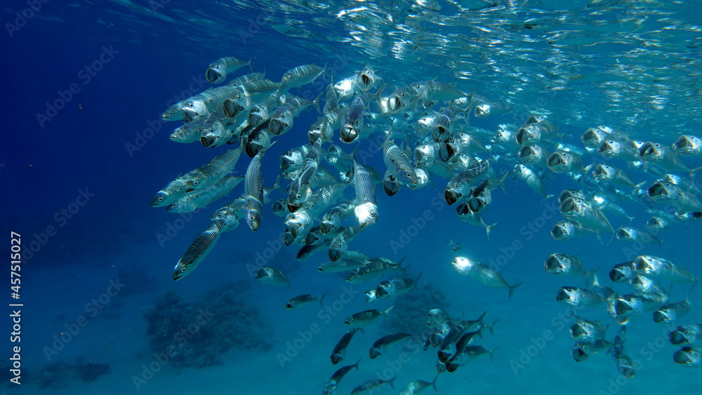 Makrele (Scombridae). Südasiatische Makrele - Indische Makrele - Rastrelliger Kanagurta. Diese Makrele wird bis zu 35 cm groß und ernährt sich von Plankton und Kaviar.