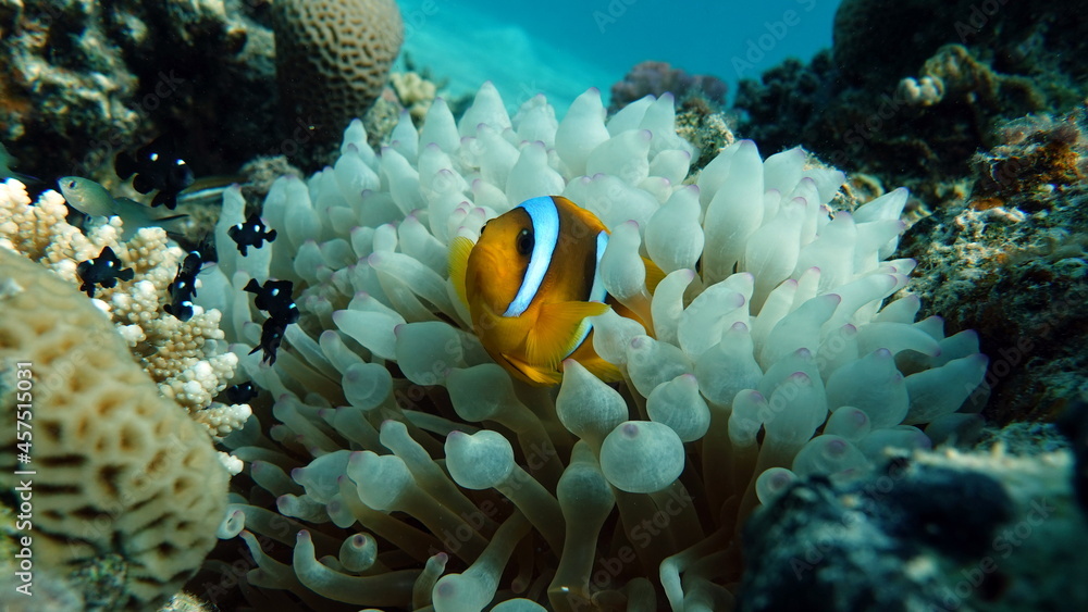 Clown fish amphiprion (Amphiprioninae). Red sea clown fish.