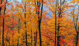 Bright maple trees at its peak color during autumn time in rural Quebec