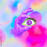 Contemporary minimal art collage. Hands and eye. Psychology, emotions concept