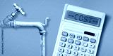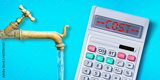 The cost of drinking water - concept with an old water brass faucet with calculator