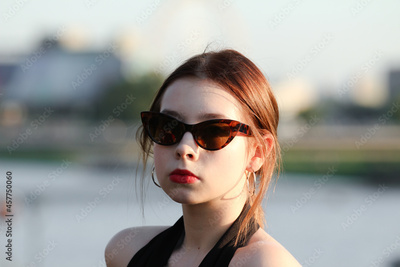 Portret pięknej kobiety na tle miasta