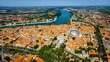 The aerail view of Arles, a city on the Rhône River in the Provence region of southern France